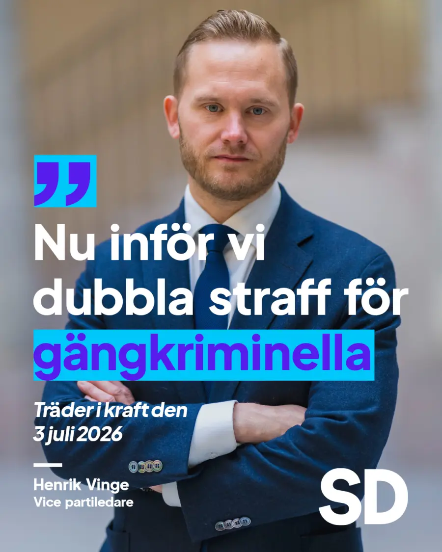 Idag presenterar Tidöpartierna en lagrådsremiss med en rad kraftfulla straffskärpningar. Lagändringarna föreslås träda i kraft den 3 juli 2026.
