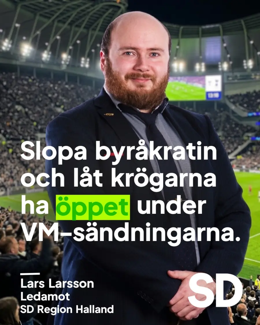 Sverigedemokraterna står för ett tryggt, fritt och svenskt Sverige. Det betyder mer sammanhållning och större friheter. Det betyder också ett större ansvar för den enskilde, så att friheten inte går ut över andras trygghet. Därför säger vi ja till en VM-sommar där människor kan samlas, fira och uppleva folkfesten tillsammans – utan att byråkratiska hinder står i vägen.