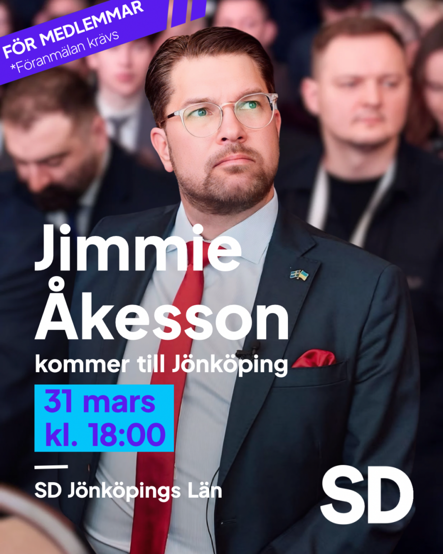 Jimmie Åkesson är ute på en distriktsturné och nu är turen kommen till Jönköpings län. Föranmälan krävs och görs genom att kontakta din lokala kommunförenings ordförande. Om du är osäker på vem detta är kan du logga in på minasidor.sd.se och läsa under avsnittet ”Kontaktinformation” vilken förening du tillhör och vem som är ordföranden.