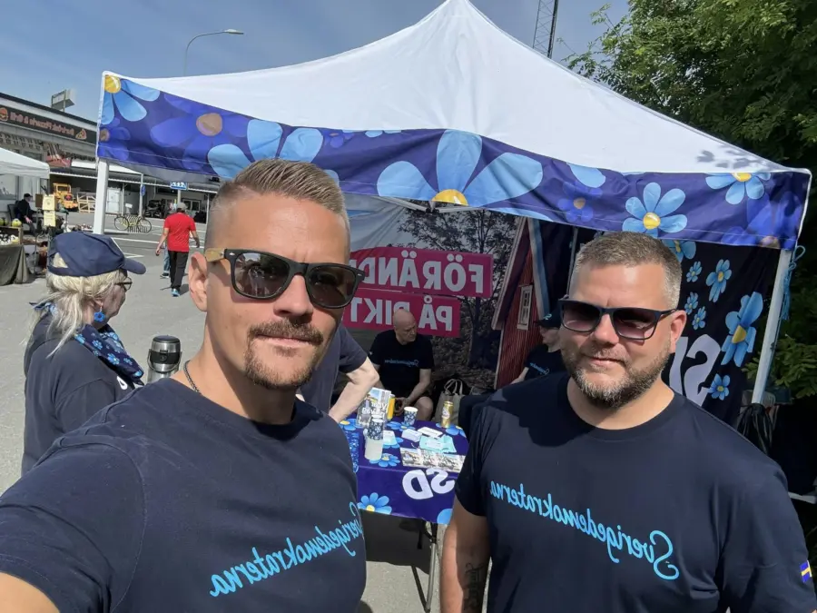 Burträsk marknad idag med SD Skellefteåregionen, med besök från Umeå och Robertsfors. Strålande väder och många nyfikna gäster i tältet! Vädret var kanon och lämnade tillskillnad från förra året inget mer att önska. På bilden ser vi riksdagskandidat Pontus Persson och Mattias Gadd (ordförande SD Skellefteåregionen).