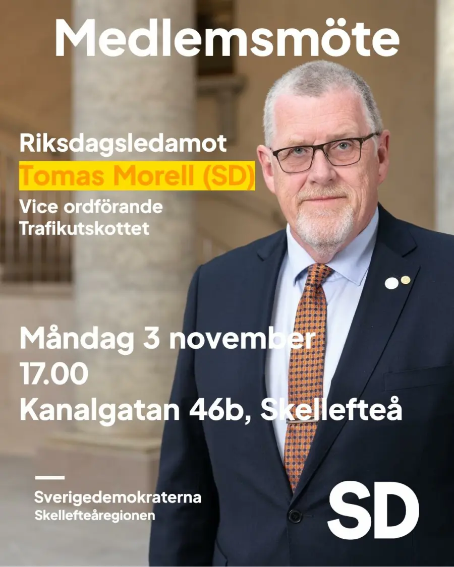 Tomas Morell, riksdagsman för Sverigedemokraterna, besöker oss i Skellefteå för en föreläsning den 3e november kl 17:00!