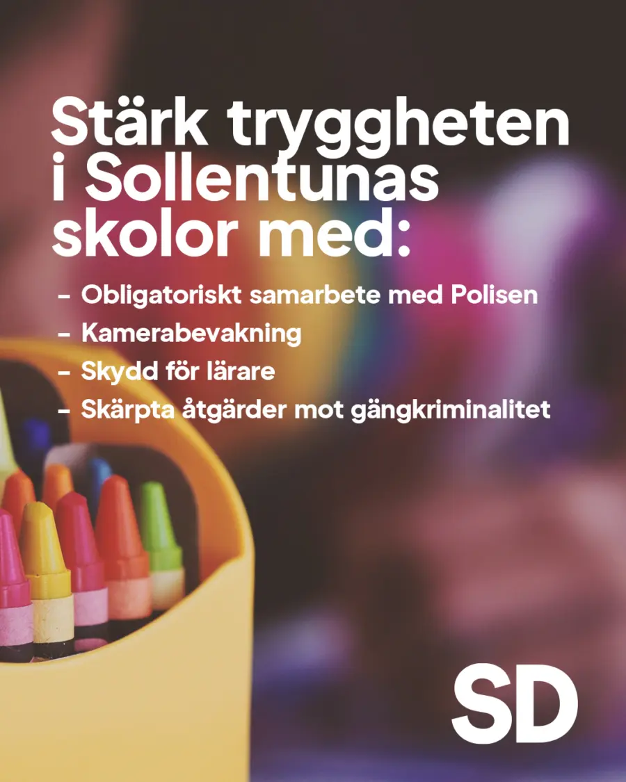 Svenska skolor har gått från att vara trygga lärmiljöer till att alltför ofta präglas av oro och otrygghet. I Sollentuna vill vi sätta stopp för detta. Därför är det viktigt att kommunen använder de trygghetsskapande verktyg som SD och regeringen har tagit fram: