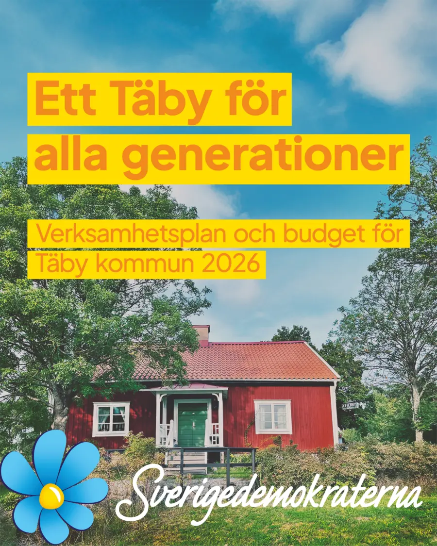 Vi i Sverigedemokraterna Täby är glada och stolta över att nu lansera vår verksamhetsplan och budget för 2026 – Ett Täby för alla generationer! Det här är inte bara siffror på papper, utan vår ritning för ett Täby som behåller sin unika charm som ”staden på landet”, samtidigt som vi ökar trygghet, välfärd och vardagsglädje. Vi prioriterar er – barn, unga, vuxna och äldre – och ser till att varje skattekrona gör maximal nytta utan slöseri. Skatten hålls oförändrad, och vi balanserar smarta besparingar med riktade satsningar för ett hållbart Täby.