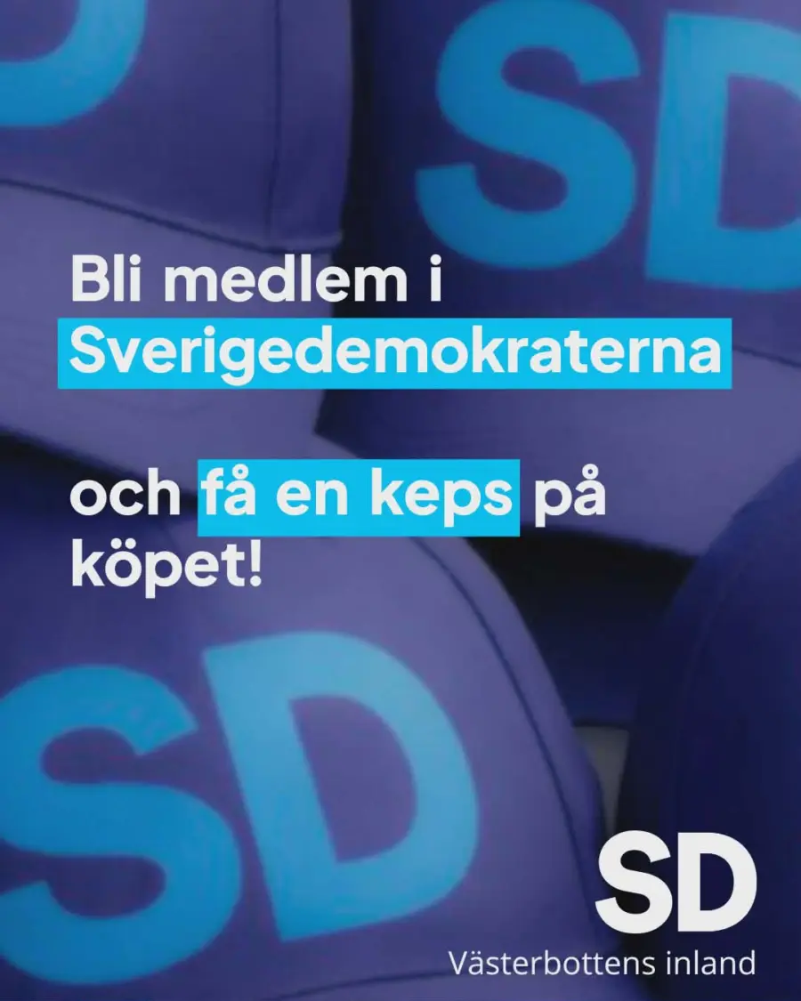 När du blir medlem i Sverigedemokraterna Västerbottens Inland får du en keps, vintermössa eller en t-shirt!